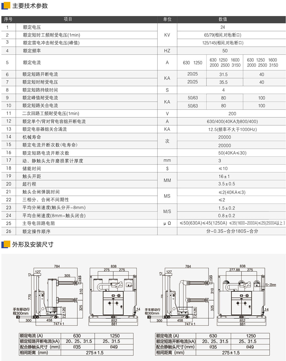 HOME户内真空断路器SN63(VS1)-24户内高压真空断路器(高原型) SN63(VS1)-24户内高压真空断路器(高原型) SN63(VS1)-24户内高压真空断路器(高原型) SN63-24型户内高压真空断路器,系三相交流50Hz额定电压为24kV电力系统的户内开关设备,作为电网设备、工矿企业动力设备的保护和控制单元。适用于要求在额定工作电流下的频繁操作,或多次开断短路电流的场所。 该断路器采用操动机构与断路器本体一体式设计,既可做为固定安装单元,也可配有专用推进机构,组成手车单元作用。 产品详情 返回列表