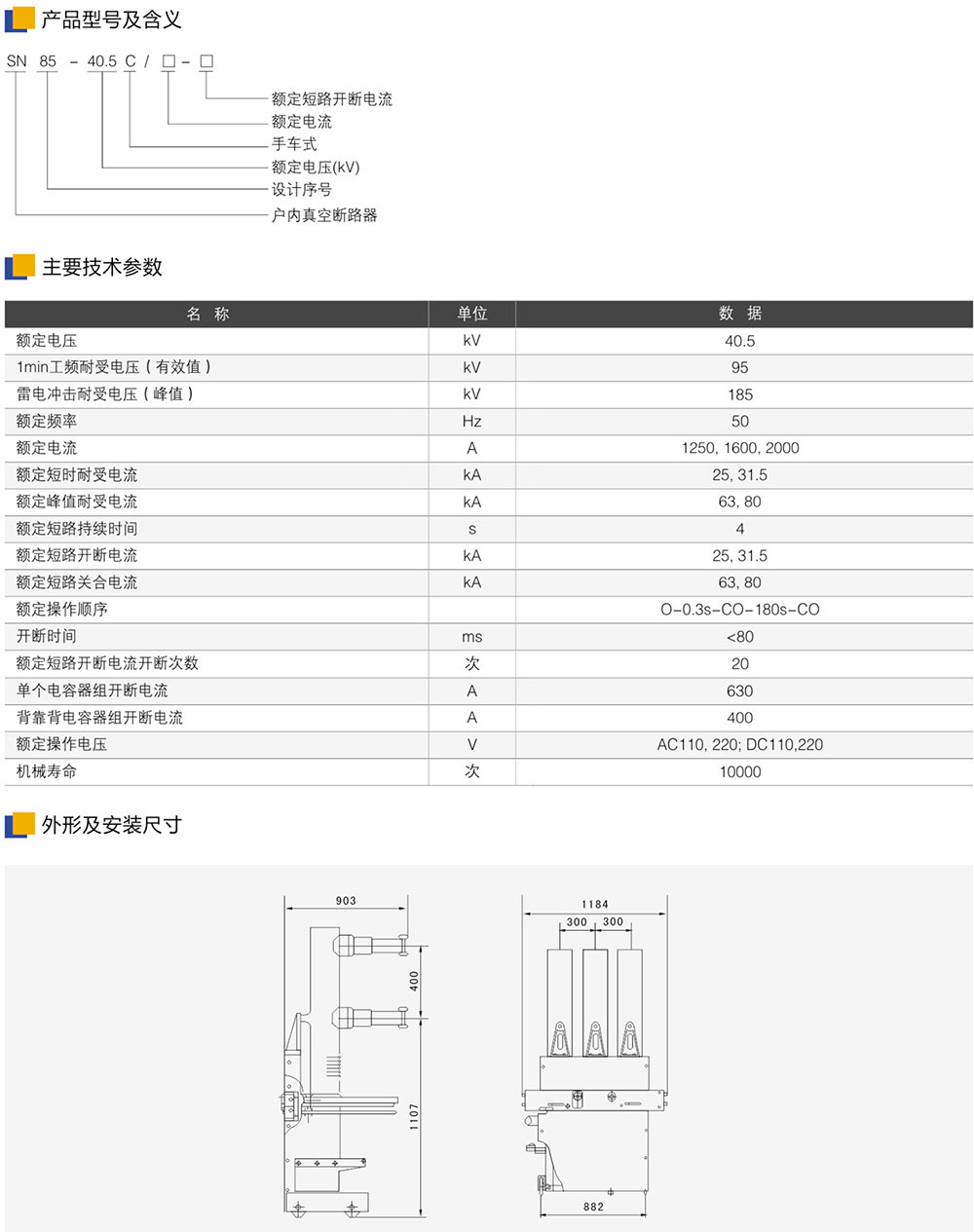 SN85-405户内高压真空断路器